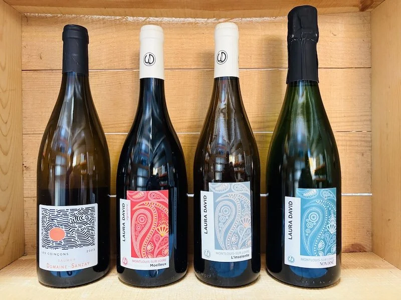 Farther upriver, on the southern bank of the Loire, and across from Vouvray, is the smaller appellation of Montlouis, known for sparkling Crémant de Loire, as much as for still wines, both sweet and dry. The bluffs of tuffeau are pockmarked with caves, not only used for cellars, but many dwellings as well. It's in one of these caves that Laura David has installed her winery, and next door, her husband has a bakery - for locals, it's a one stop shop.