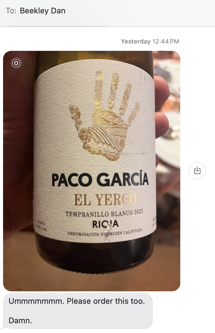 Rioja is practically synonymous with red wine. Vineyards are dominated by Tempranillo, Garnacha, and to a lesser degree Mazuelo (aka Carignan). Still, there are some white wines to be found in the region, if you’re looking in the right places. And sometimes, one will pop up, right in front of you, from where you least expect it.